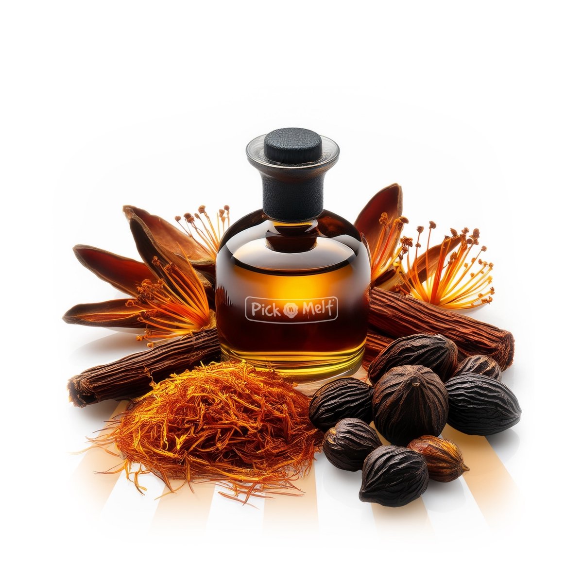 Rich spice of saffron and nutmeg with warm seductive notes of leathery labdanum, lightened by sweet floral and fruity notes.